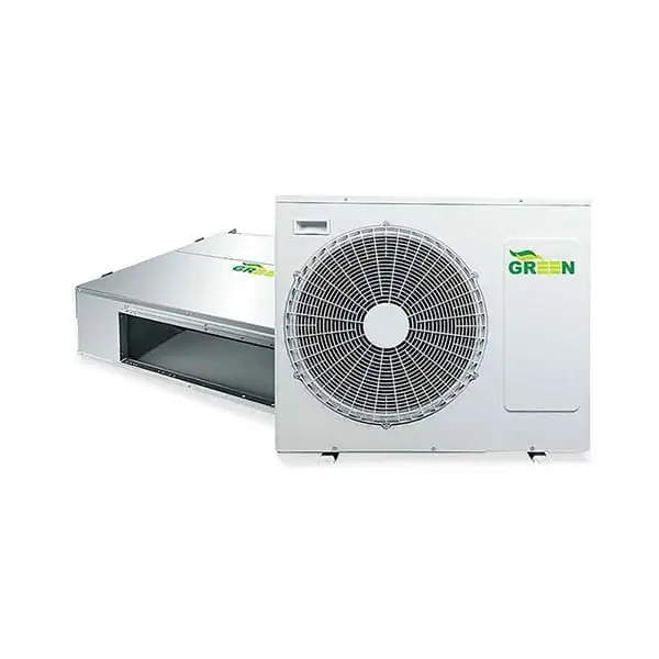 یکی از جدیدترین محصولات شرکت Green، داکت اسپلیت ۳۶۰۰۰ گرین غیر اینورتر مدل GDS-36P1T1/R1 است که با کیفیت بالایی به بازار عرضه میشود. این دستگاه داکت اسپلیت که از دو یونیت داخلی و خارجی تشکیل شده است، با استفاده از لولههای آکاردئونی هوا را به داخل فضای مورد نظر انتقال میدهد. یونیت داخلی به صورت مخفی در سقف کاذب نصب میشود و یونیت خارجی شامل کندانسور، کمپرسور و فن است که در خارج از ساختمان یا بالکن نصب میگردد.